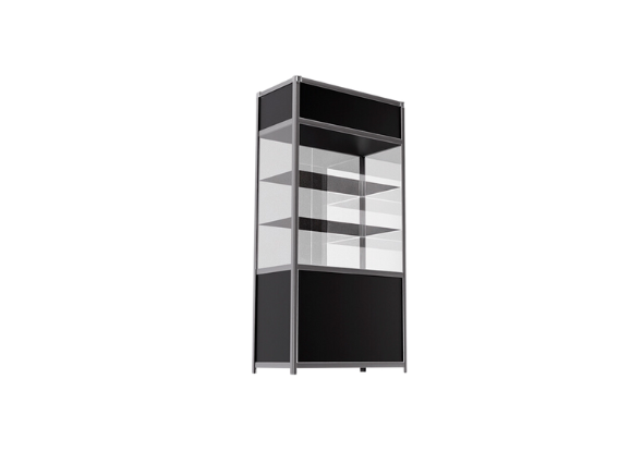Витрина высокая прямоугольная черно-серебристая
