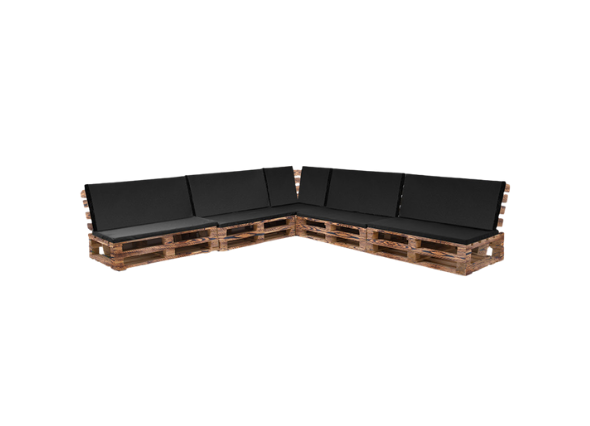 Диван модульный из паллет Обожженный с черной/серой подушкой