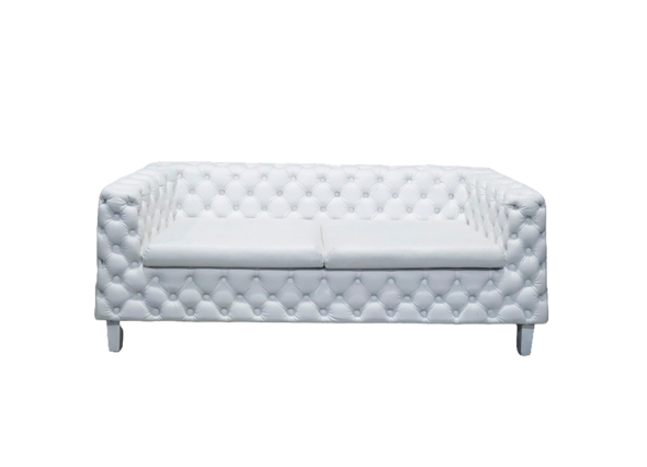 Обивка дивана Malavi выполнена из качественной экокожи чистейшего белого цвета. Этот оттенок символизирует чистоту и свежесть, гармонично вписываясь в любой интерьер, будь то современный минимализм или классический шик. Узор из деревянных ‘кнопок’, расположенных в шахматном порядке на основной части дивана, придает ему особый шарм и делает его визуально интересным.